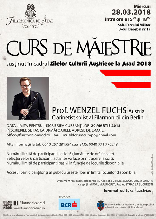 La organizarea acestei suite de evenimente culturale de excepție și-au dat mâna patru instituții: Consiliul Județean, Centrul Cultural Județean Arad, Forumul Cultural Austriac la București și Asociația Culturală Musikforum Europa Arad sub Înaltul Patronaj al Ambasadei Republicii Austria la București și al Consulatului Republicii Austria la Timișoara.