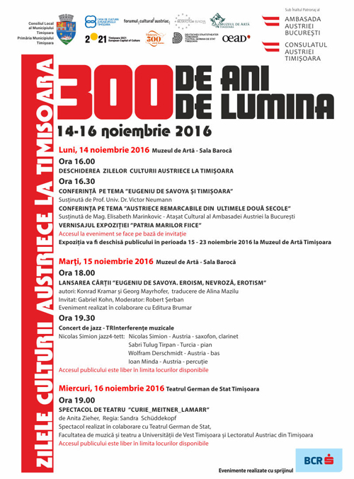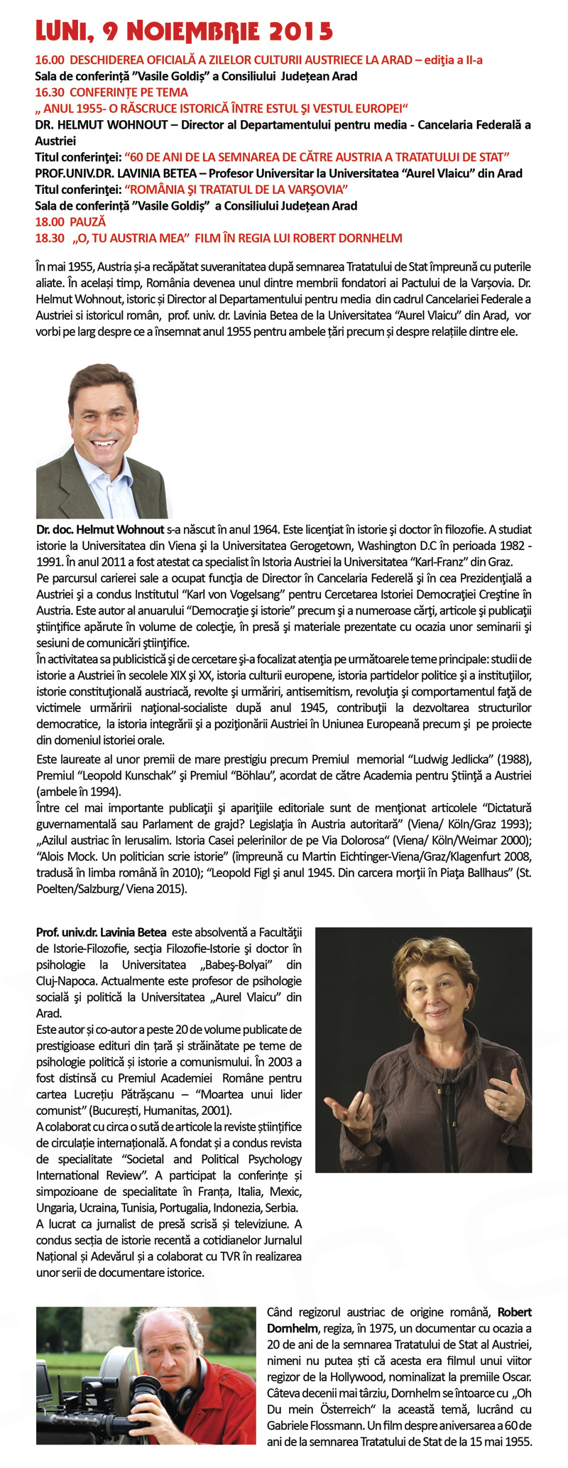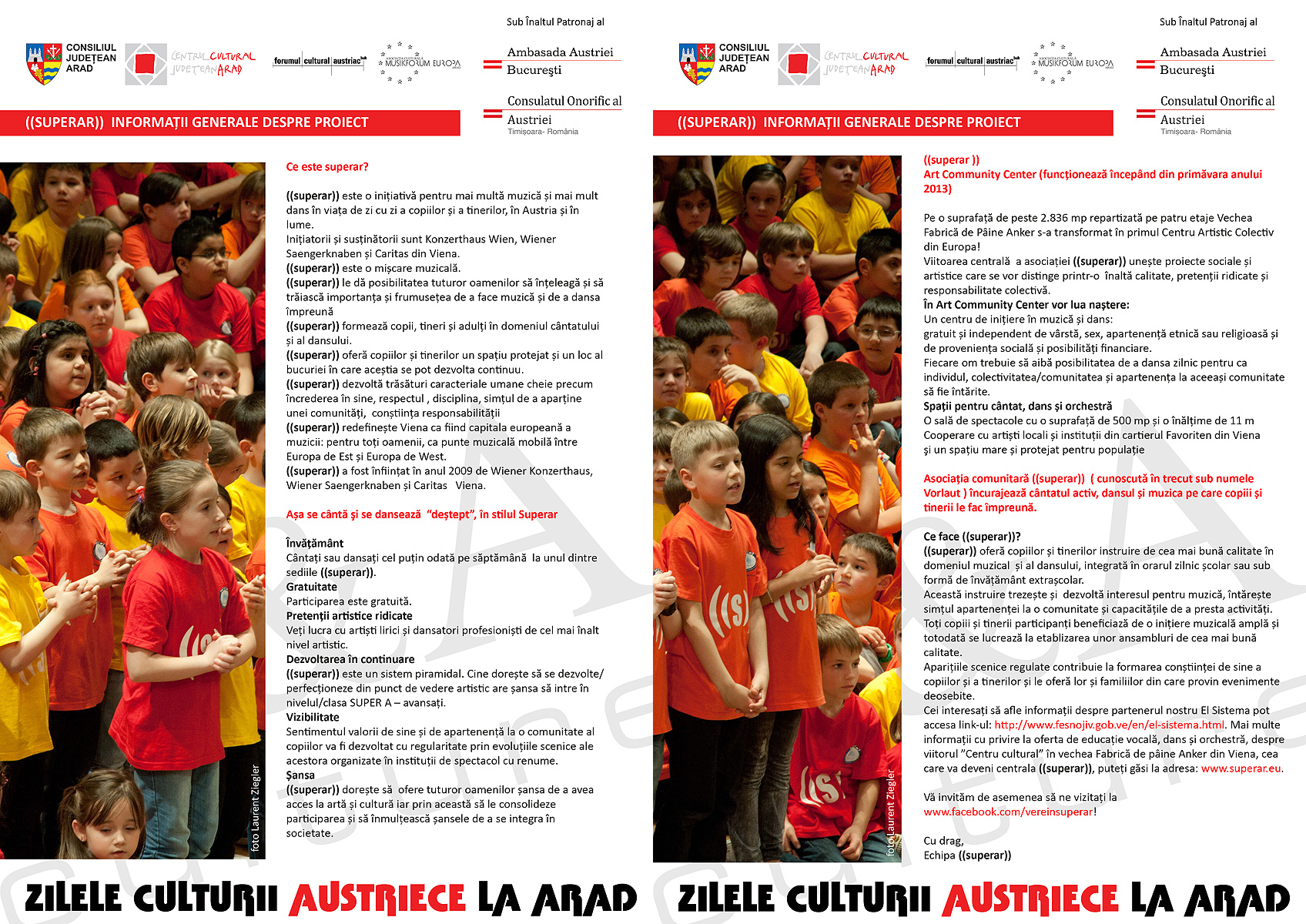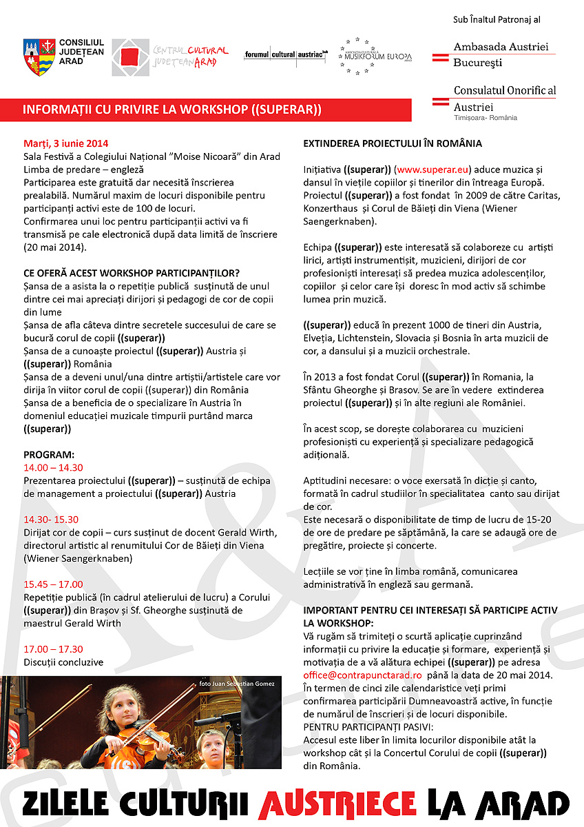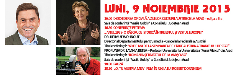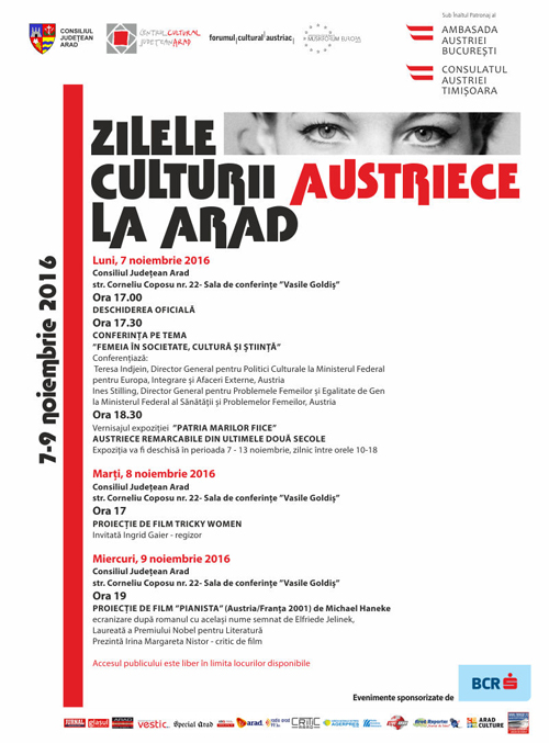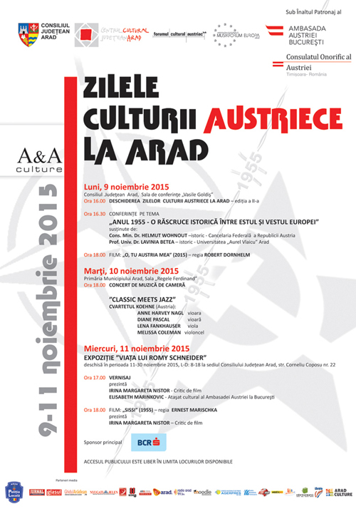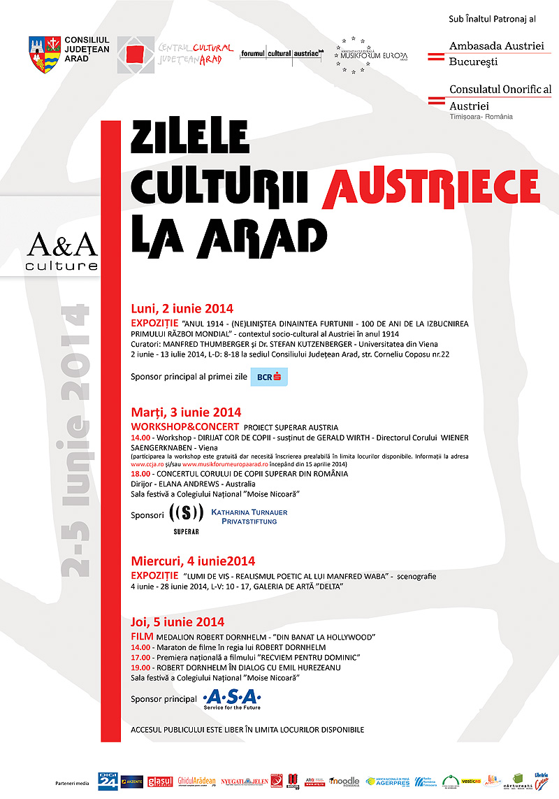 Zilele Culturii Austriece la Arad vor fi găzduite de Consiliul Județean Arad în perioada 2-5 iunie 2014.