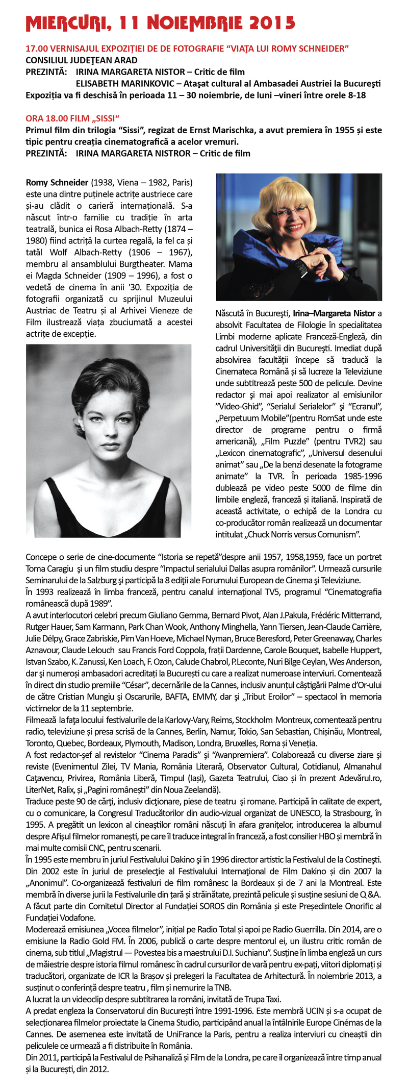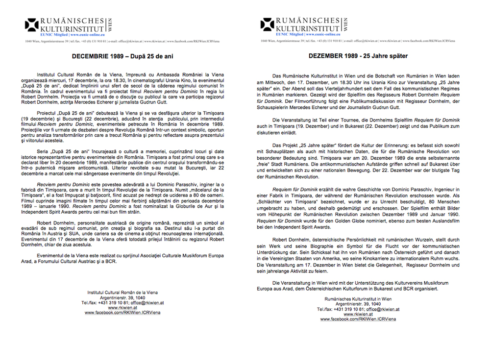 Viena: 17 Decembrie 2014, ora 18.30 – Cinema Urania |