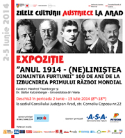 Contextul socio-cultural al Austrie de acum 100 de ani este tema expoziției itinerante cu titlul ”Anul 1914-(Ne)liniștea dinaintea furtunii”- 100 de ani de la izbucnirea Primului Război Mondial, cu care se vor deschide Zilele Culturii Austriece la Arad, luni, 2 iunie 2014 la Consiliul Județean Arad.
