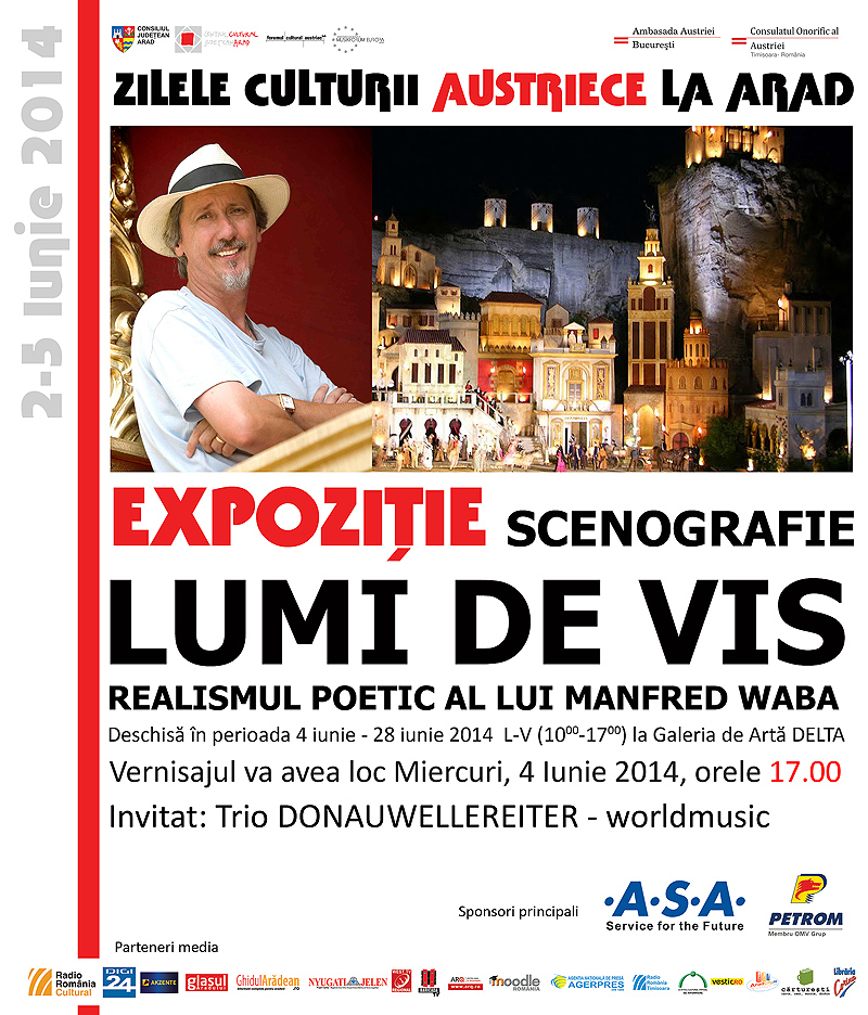 Într-o expoziție care poartă un titlu sugestiv, ”Lumi de vis-Realismul Poetic al lui Manfred Waba”, Galeria de Artă ”Delta” din Arad va găzdui, în perioada 4.06-28.06.2014 arta scenografică a profesorului Manfred Waba, personalitate complexă care în ultimii 15 ani și-a pus amprenta inconfundabilă pe producțiile de operă realizate în celebra Carieră Romană de Piatră de la St. Margarethen, Austria, acolo unde au loc spectacolele renumitului Festival de Operă în aer liber de la St. Margarethen.