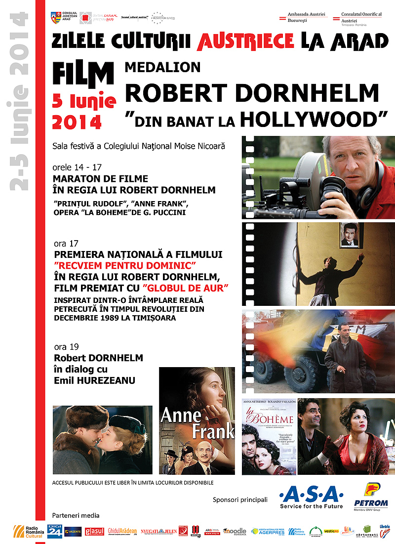 Înaintea premierei amatorii de film vor avea posibilitatea să vizioneze în cadrul unui maraton de filme, tot la Colegiul Național ”Moise Nicoară” trei dintre ecranizările de referință din palmaresul marelui regizor, ”Prințul Rudolf”, ”Anne Frank” și opera ”La Boheme” de G. Puccini iar după premieră publicul este invitat să asiste la un dialog live Robert Dornhelm – Emil Hurezeanu.