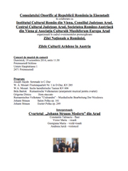 Simpozion cultural internațional cu titlul “Noi dimensiuni ale integrării Europene prin muzică” organizat sub auspiciile Consiliului Județean Arad. |
