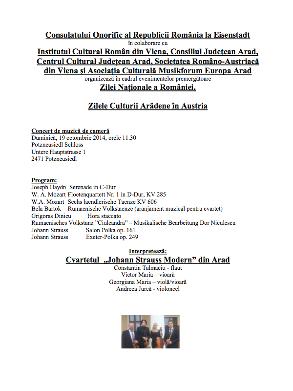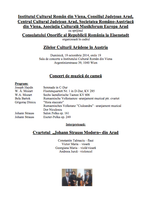 Festivalul Aradean de Muzica Vieneză în colaborare cu Filarmonica de Stat Arad și Forumul Cultural Austriac la București |